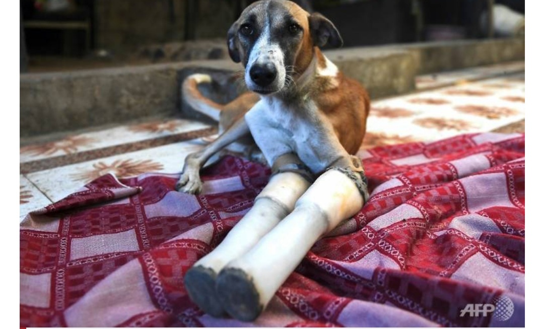 Both her forelegs severed and her hind maimed - That's the condition in which an RPF constable found a young stray dog on a railway track in faridabad.Rocky, now three years old, had come under train at Ballabhgrah railway station and almost bled to death.