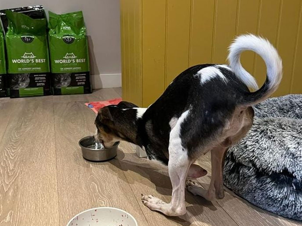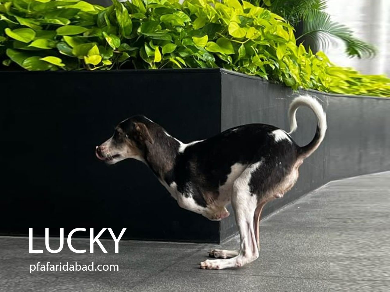 Lucky, an 11-month-old male pup. was brought to Astha, an animal care shelter run by People for Animals (PFA Faridabad) Faridabad trust, Said by Ravi Duby. The three months old pup was injured in a mishap on a railway track in January and lost its front paws. Now Lucky has found its new home in England.